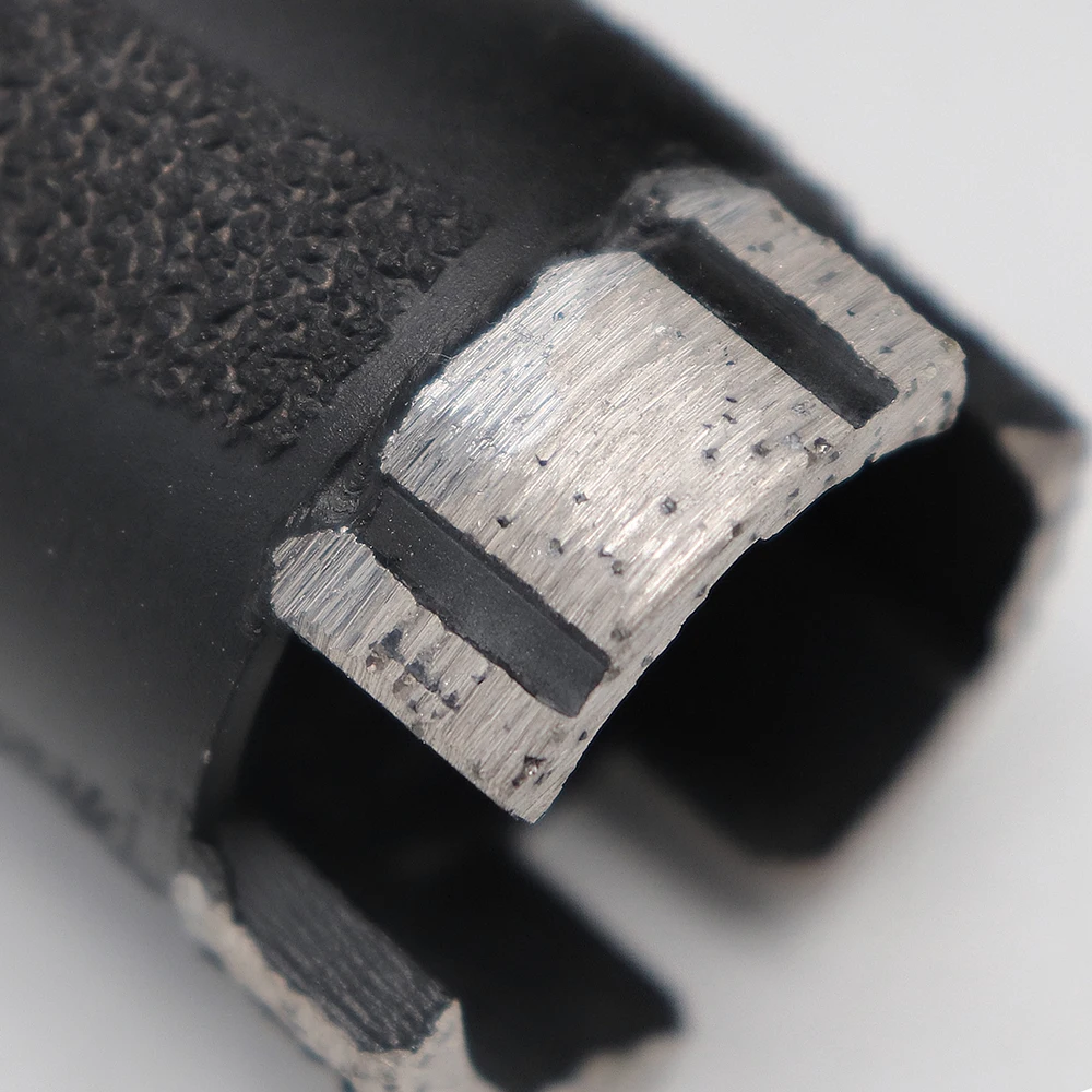 When searching for the right drill bit for stone, it is important to understand the durability of the tool. Our Type A sintered bits feature a 10mm segment height. Unlike thin-coated bits, the diamonds are embedded throughout the entire segment. As the metal bond wears away during the drilling process, new sharp diamonds are constantly exposed.